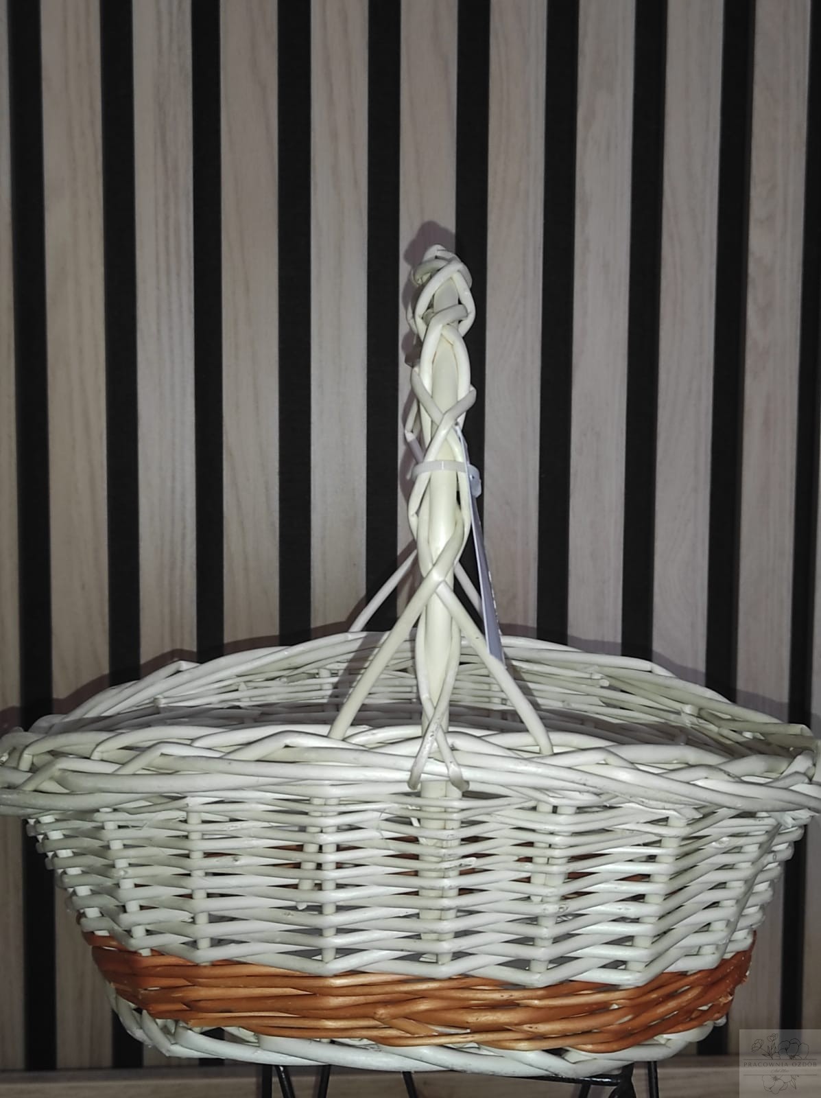 Tradycyjny, owalny koszyczek wielkanocny wykonany z wysokiej jakości naturalnej wikliny. Starannie pleciony, solidny i trwały, doskonale sprawdzi się do święcenia pokarmów oraz jako klasyczny element wielkanocnej oprawy.