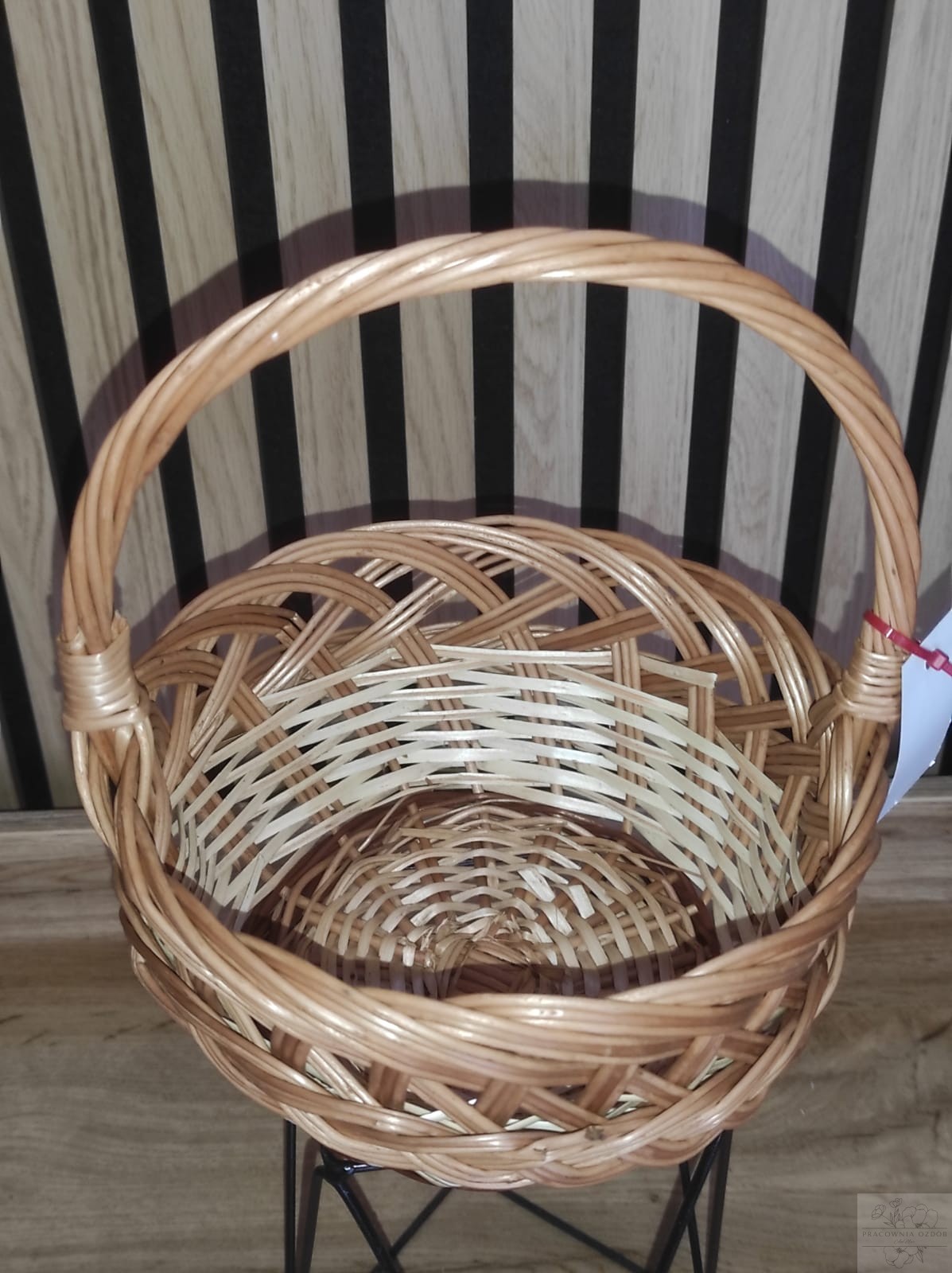Tradycyjny, okrągły koszyczek wielkanocny wykonany z wysokiej jakości naturalnej wikliny. Starannie pleciony, solidny i trwały, doskonale sprawdzi się do święcenia pokarmów oraz jako klasyczny element wielkanocnej oprawy.