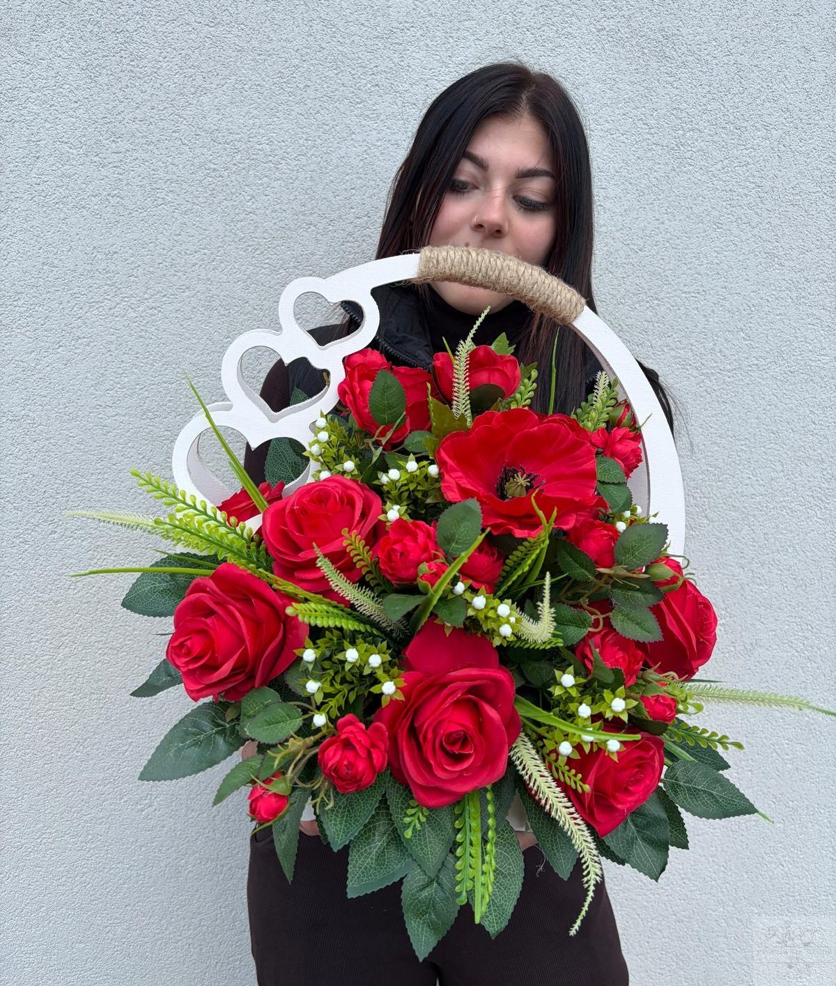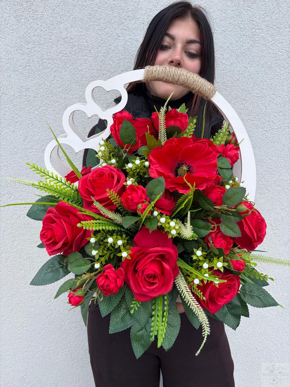 Stroik w ozdobnym białym koszyczku w czerwieni