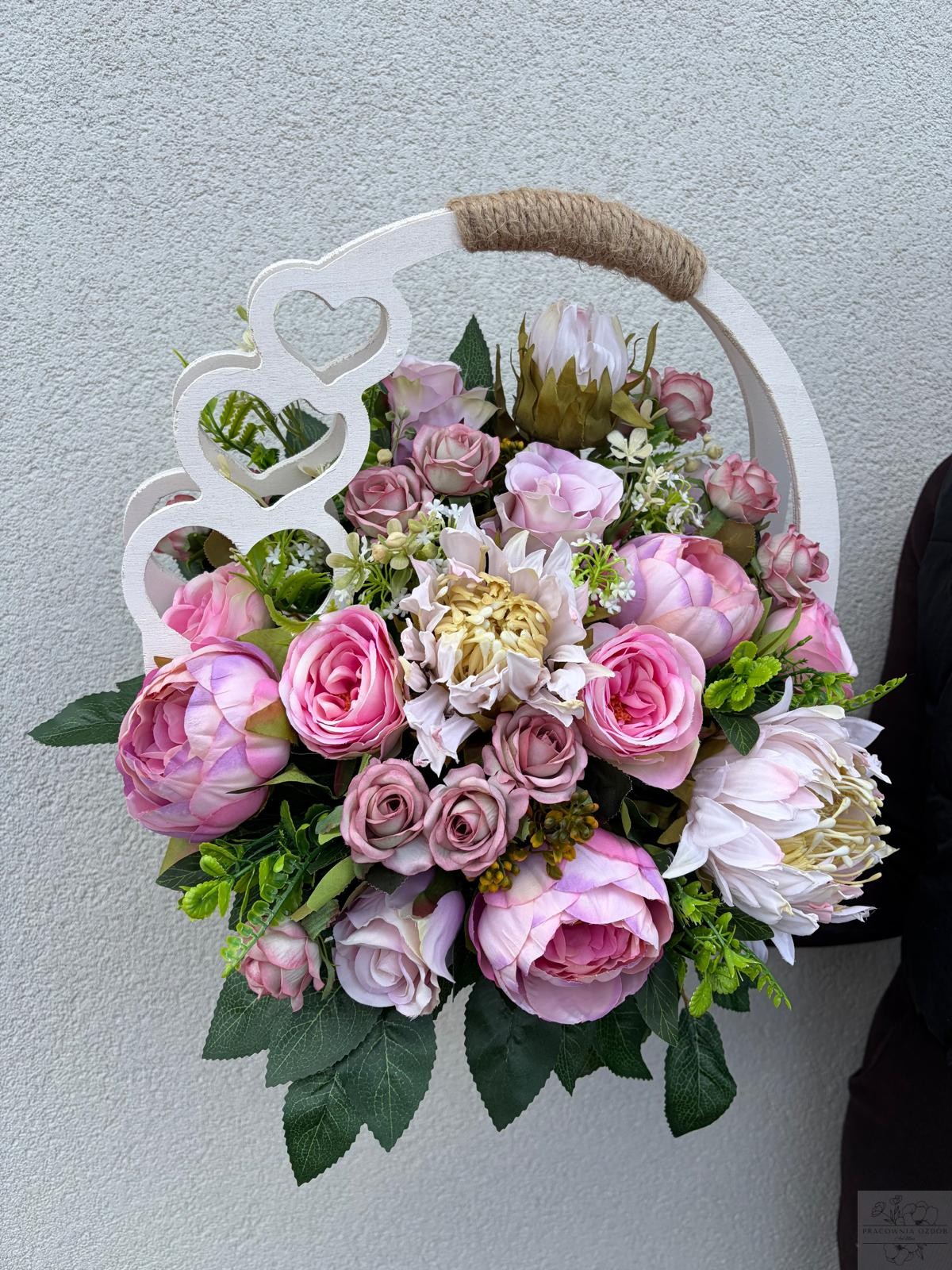 Stroik w ozdobnym białym koszyczku w różu