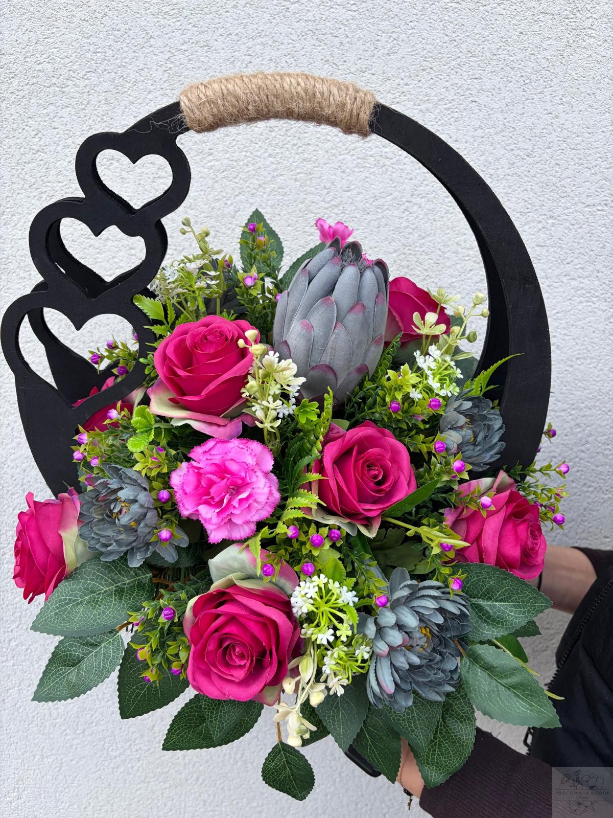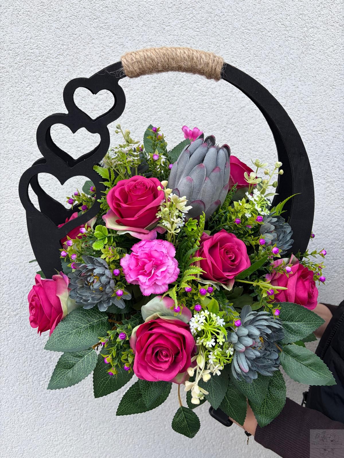 Stroik w ozdobnym czarnym koszyczku "Grafit i Fuksja"