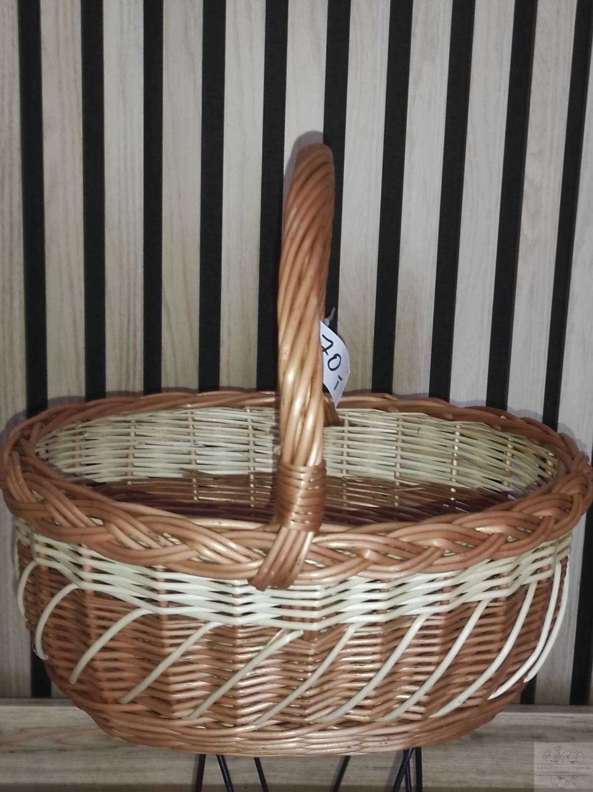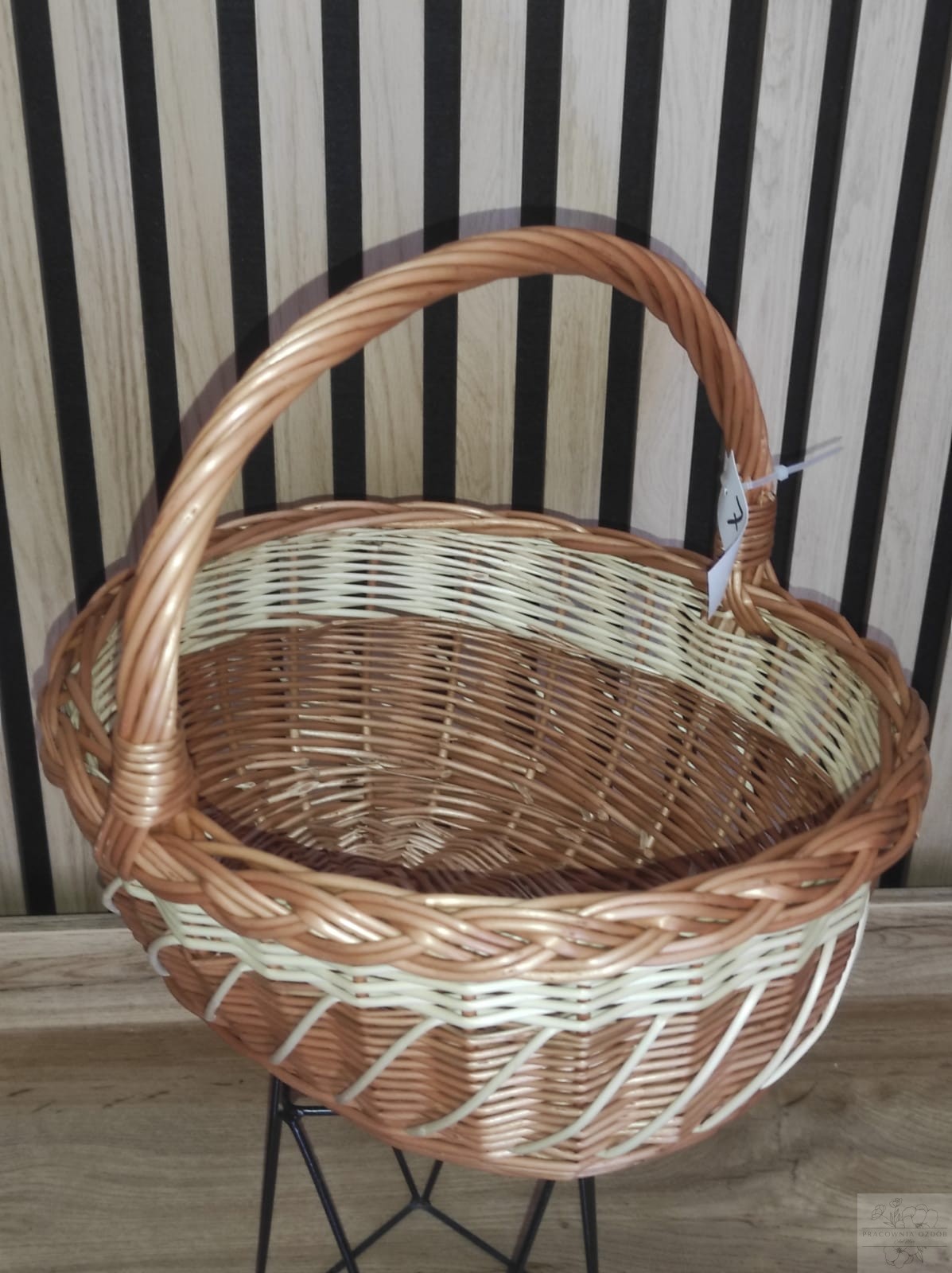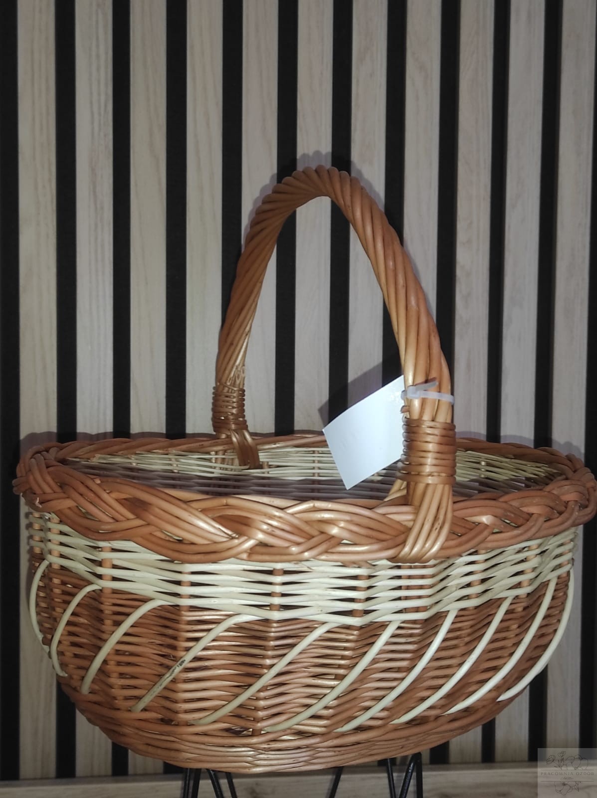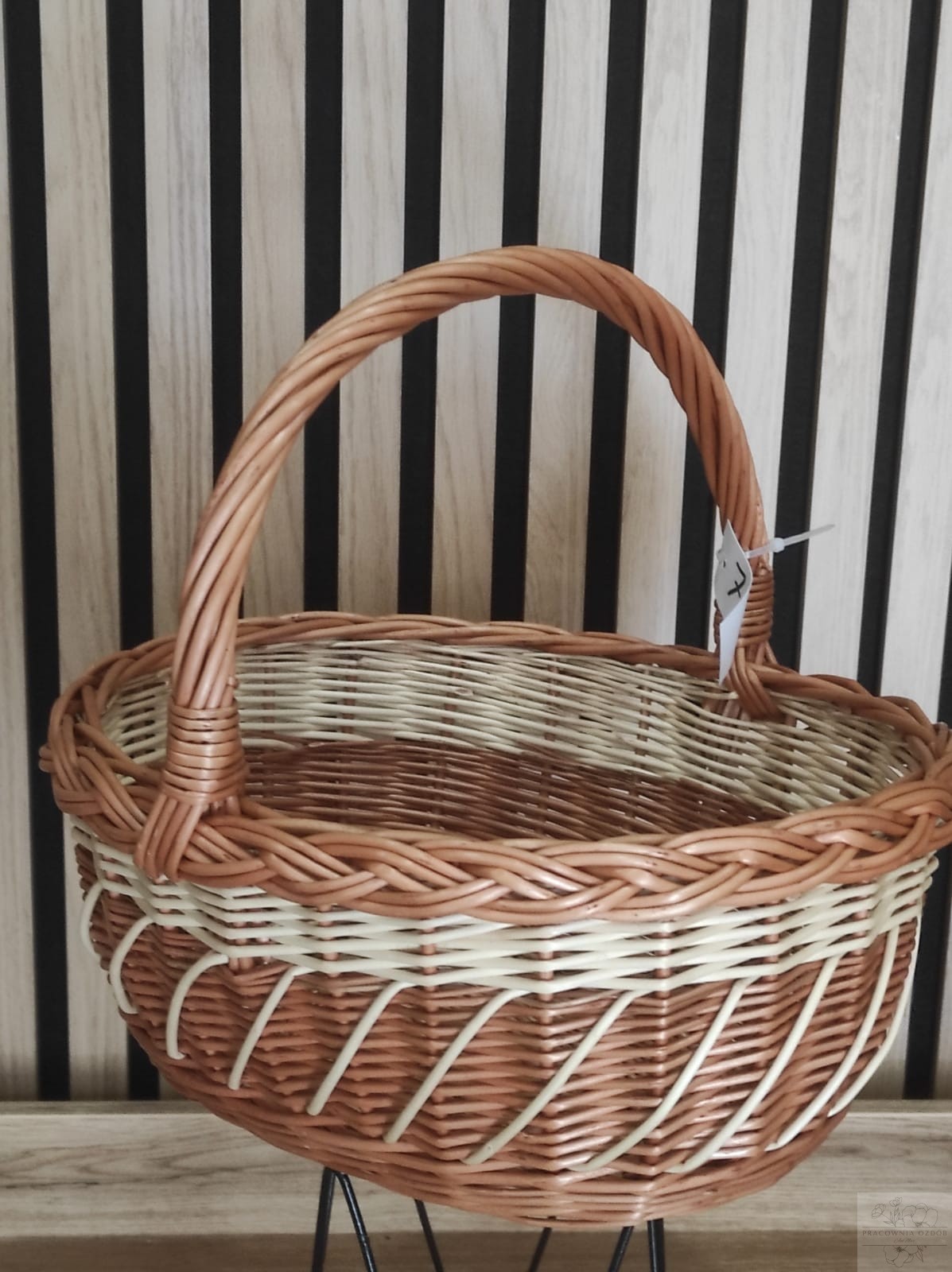 Koszyczek utrzymany jest w naturalnych, ciepłych odcieniach wikliny z delikatnymi jasnymi akcentami, które nadają mu wyjątkowego charakteru. Wygodny, stabilny uchwyt zapewnia komfortowe przenoszenie, a pojemne wnętrze bez problemu pomieści święconkę, pisanki, babkę wielkanocną czy inne świąteczne dodatki.