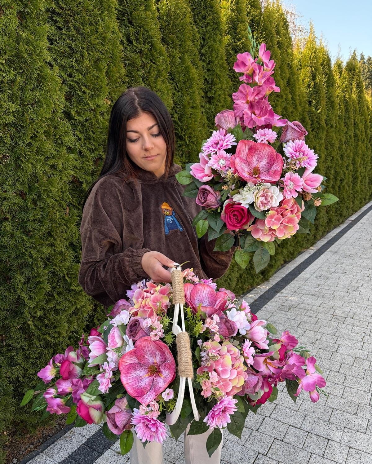 Kompozycja została ułożona na solidnej, trwałej bazie, w kształcie serca. Naturalny uchwyt ułatwia przenoszenie i ustawienie na pomniku. Idealna jako całoroczna dekoracja nagrobna.